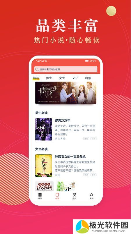 2、包括书籍和图书阅读在内的大型书架,并包括小说网络和各种图形的准确分类。