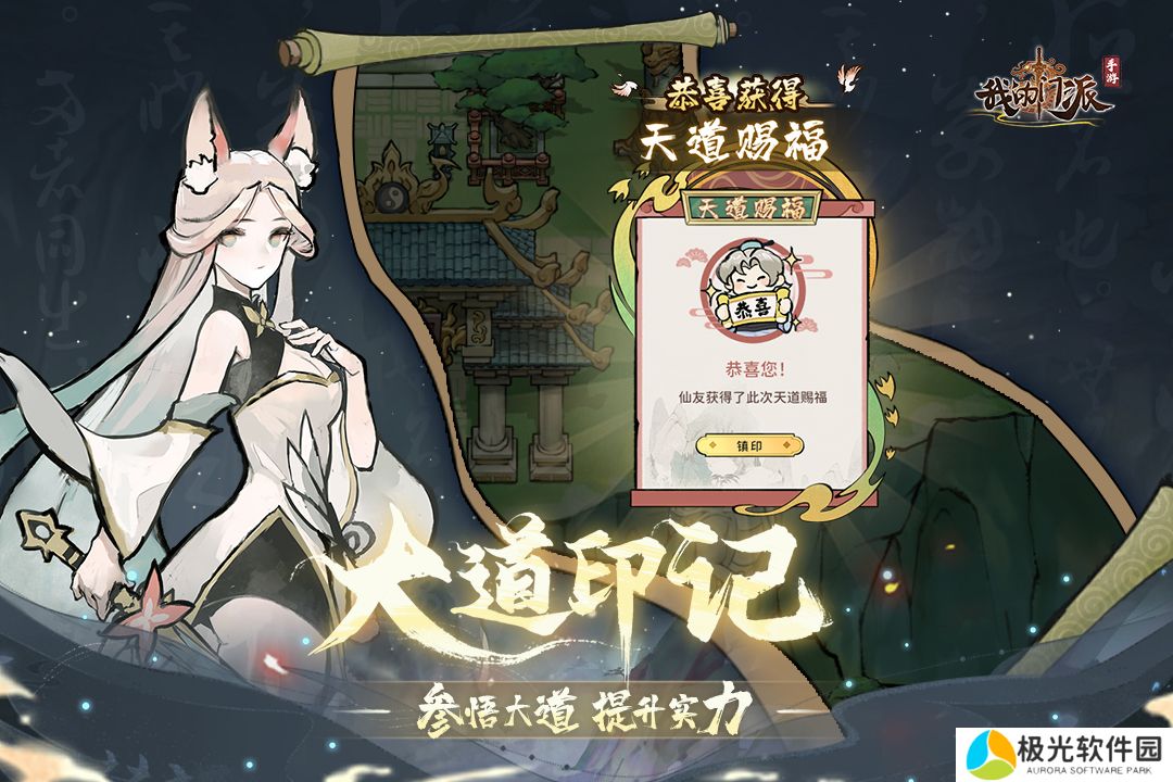 3、多种修仙人物不同的画面趣味的事件带来一个全新的游戏世界,多种道具随机出现增加了乐趣。