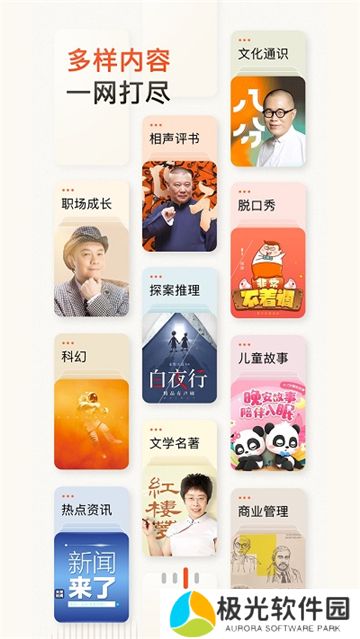 1、你还可以征集有声小说、相声、新闻、歌曲、脱口秀、笑话等可供选择。