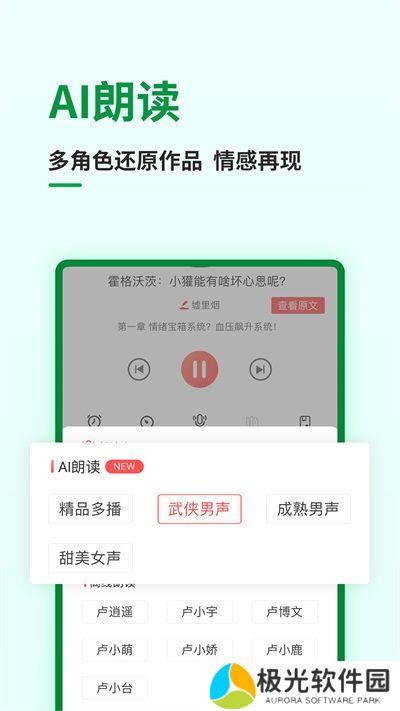 1、AI朗读:多角色对话朗读,真实场景音效,情景再现,臻品音质,带来不一样的听书体验。