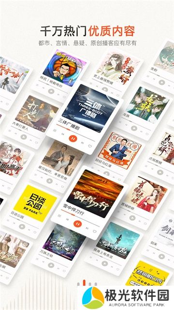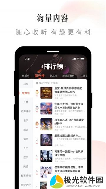 1、支持海量优质有声读物、名人读物、独特内容等,给予更广泛的需要。
