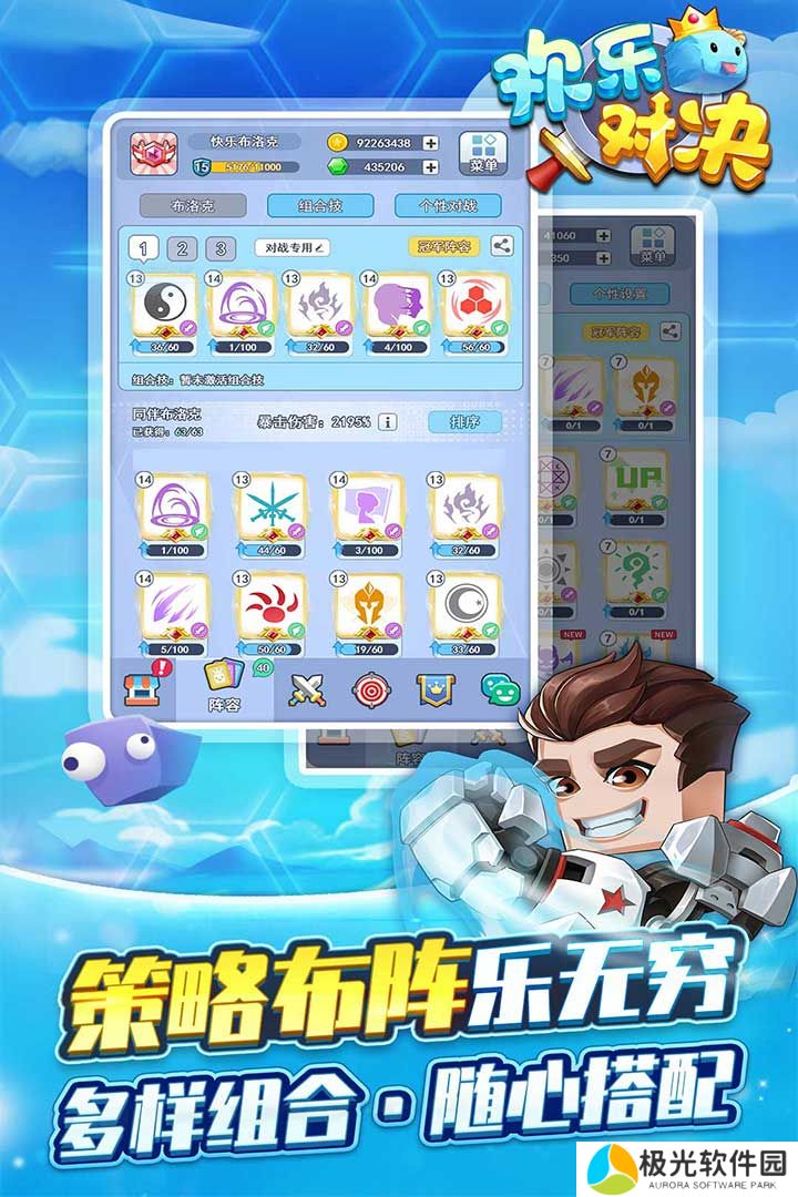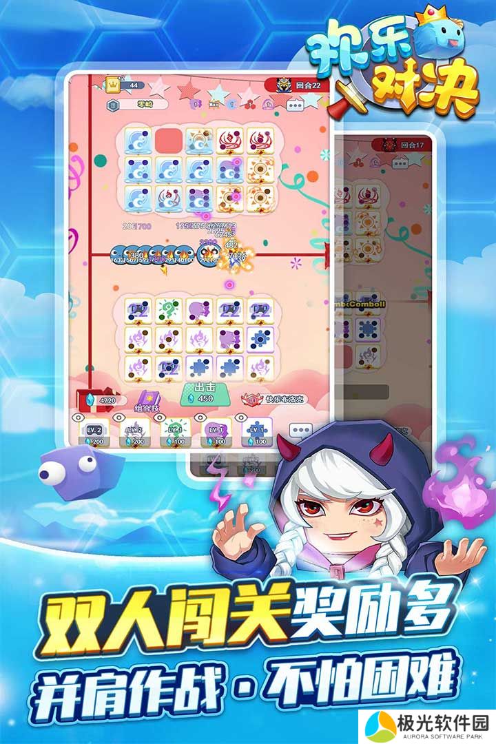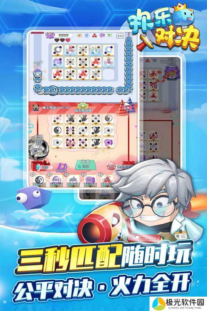 1、欢乐对决游戏的玩法不简单,在塔防的基础上还添加了放置合成的元素;