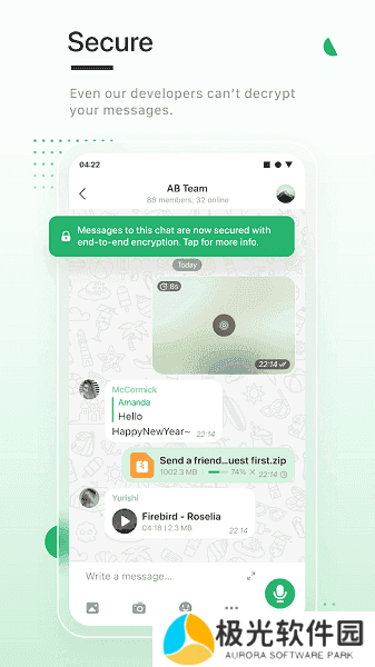 enigma messenger社交软件是一个非常好的社交服务平台,提供多种优质的聊天模式,让用户可以更好的在线交流和互动,软件支持聊天加密、群消息设置、视频通话等。这种服务保护了每个人的隐私和安全,而且非常方便,让用户体验到社交互动和轻松在线互动的乐趣。快来下载enigma messenger社交软件体验吧!