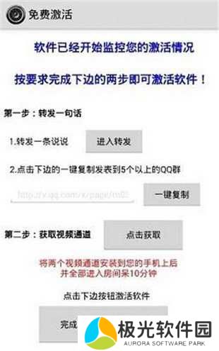 点击软件界面的免激活按钮,软件即开始监控您的激活情况,按照要求完成以下两步即可激活软件;