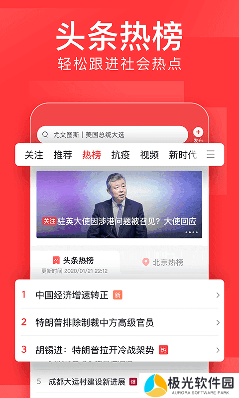 今日头条官方正版是一款非常流行的新闻资讯软件,这里有海量的新闻可以看,阅读量非常高,用户可以根据自己的喜好看新闻,它是国内目前为止互联网成长最快的服务软件,有需要的小伙伴赶紧来下载吧!
