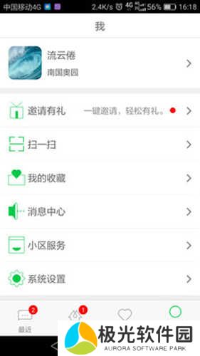 2、登陆后进入的第一个页面就是“最近”这个页面了,会有“隔壁小妹”为你解答各种问题,系统消息会有各种活动通知和小区物业的各种通知,所以我们也需要关注。当然之后我们会跟各位邻居沟通,所以也会在这里查看到我们近期有联系的邻居。