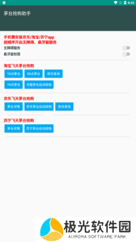 支持京东、淘宝、苏宁、酒仙网飞天茅台详情查看和抢购(手机需安装这四个APP)。